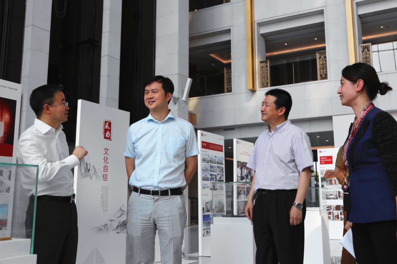 浦东新区卫计委、世博局一行在远东领导的陪同下,首先参观了远东宏信新办公楼的中庭展示区、商务会议中心以及公司文化墙,了解远东的发展历程并感受企业文化,到访领导们对远东宏信广场在建设过程中精益求精的工匠精神,以及远东公司深厚的企业文化传承与沉淀赞叹不已。